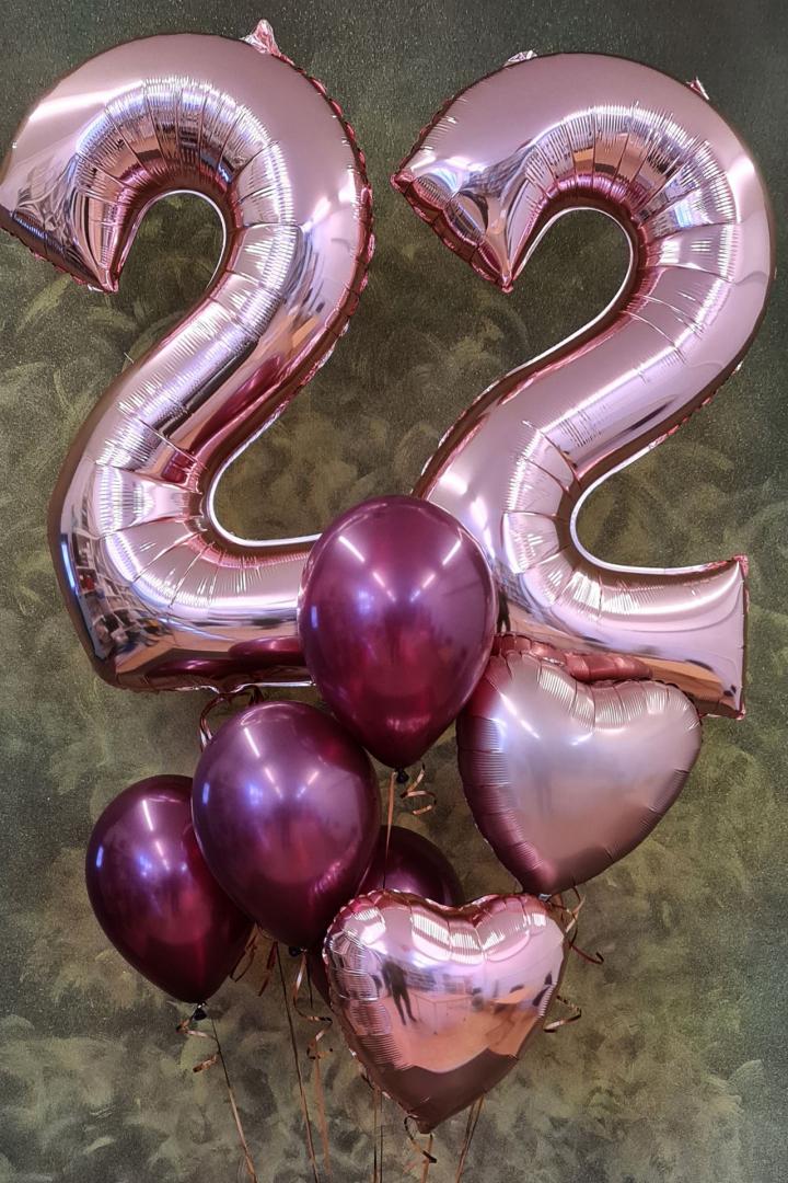 2 Ziffern + 2 Folienherzen + 3 Rundballons